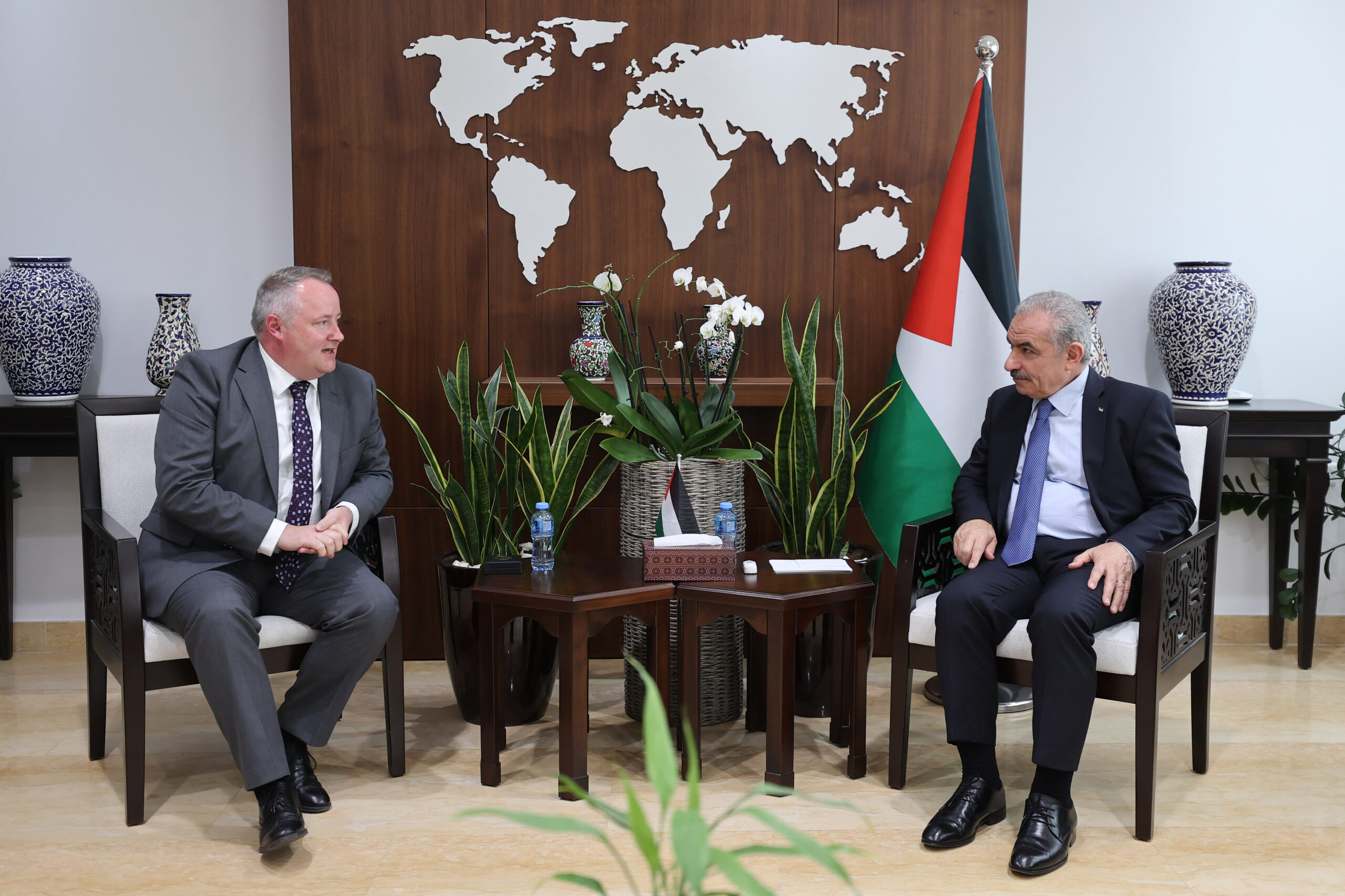 اشتية يستقبل برلمانيًا بريطانيًا: يدعو للاعتراف بدولة فلسطين