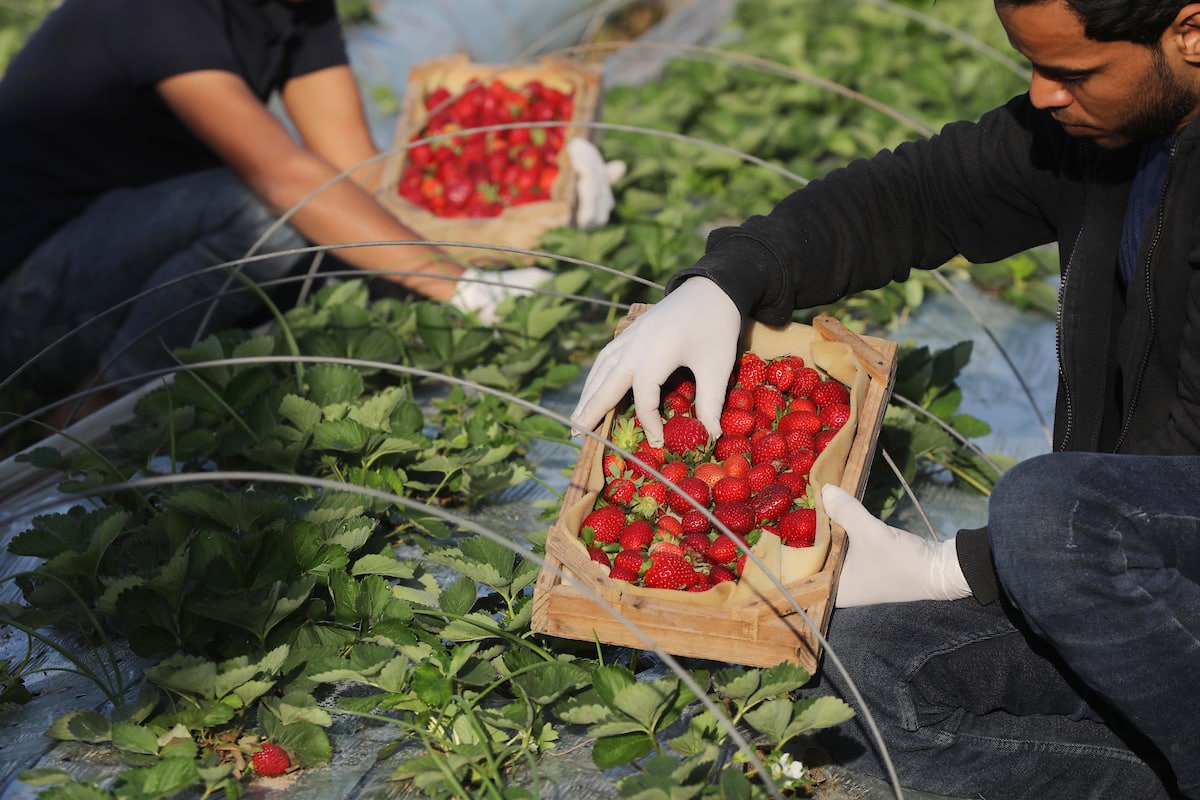 بالصور: موسم الفراولة “الذهب الأحمر” في بلدة بيت لاهيا، شمال قطاع غزة. تصوير: هاني الشاعر