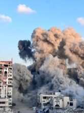 شاهد بالفيديو: الاحتلال يقصف عمارة “الرؤيا” غرب غزة ويشرد العائلات النازحة مجددًا