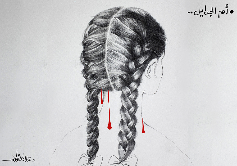 كاريكاتير أم الجدايل بريشة الفنان الدكتور علاء اللقطة
