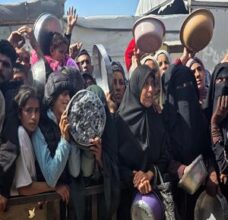 نازحون يتجمعون للحصول على وجبات طعام من مطبخ خيري في خان يونس جنوب قطاع غزة