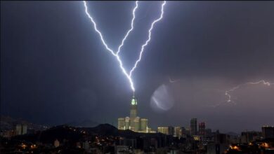 بالصور.. صاعقة تضرب «برج الساعة» بمكةالخامسة للأنباء – السعودية في مشهد مُخيف بسماء مكة الطاهرة، وفي أعلى برج الساعة، شكلت صاعقة مع وميض البرق صوراً…