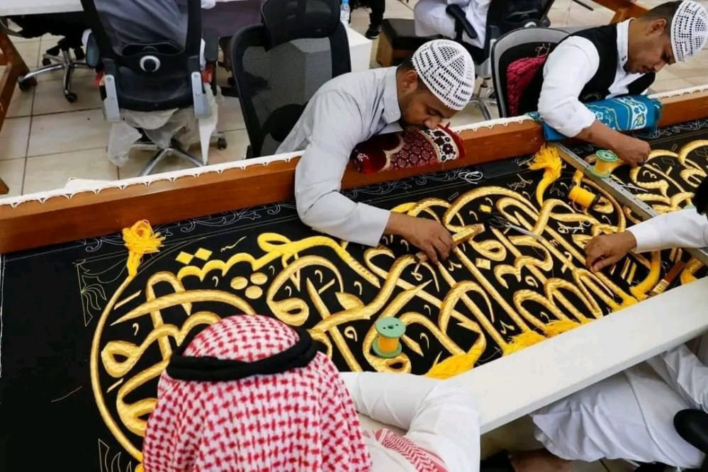 📷حياكة كسوة الكعبة المشرفة في مكة المكرمة استعداداً لتغيير الكسوة