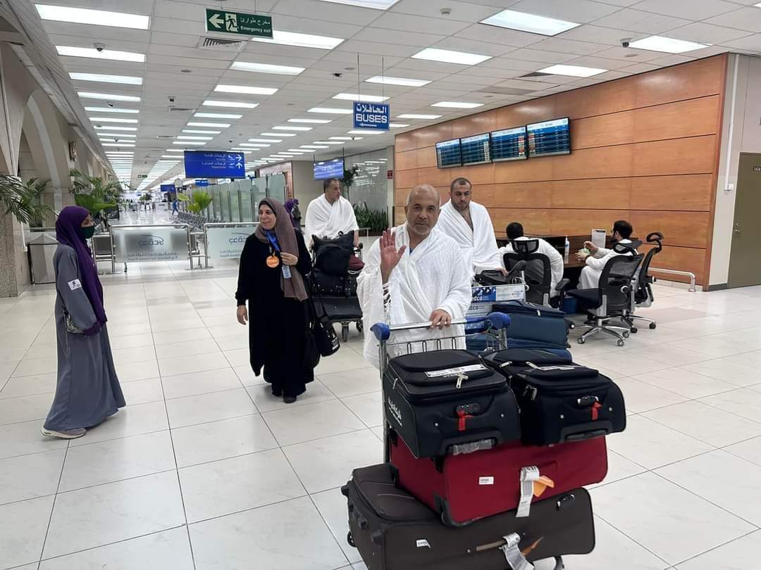 بالصور| اللحظات الأولى لوصول حجاج قطاع غزة، إلى أرض الحجاز.