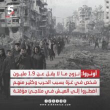 أونروا: نزوح ما لا يقل عن 1.9 مليون شخص في غزة بسبب الحرب وكثير منهم اضطروا إلى العيش في ملاجىء…