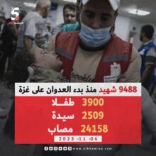 شبكة الخامسة للأنباء – غزة أعلنت وزارة الصحة ارتفاع حصيلة العدوان الإسرائيلي إلى 10569 شهيداً منهم 4324 طفلاً، و2823 سيدة…