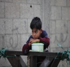 الطفل الفلسطيني آدم أبو حليب (5 سنوات) نازح مع عائلته في وسط قطاع غزة