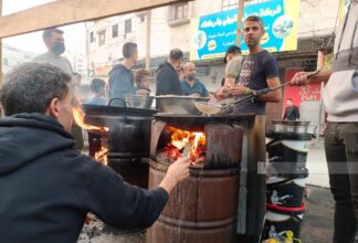 شبكة الخامسة للأنباء _غزة صــور| أهالي غزة يستخدمون الحطب في طهي الفلافل بعد منع الاحتلال ادخال الغاز والوقود للقطاع