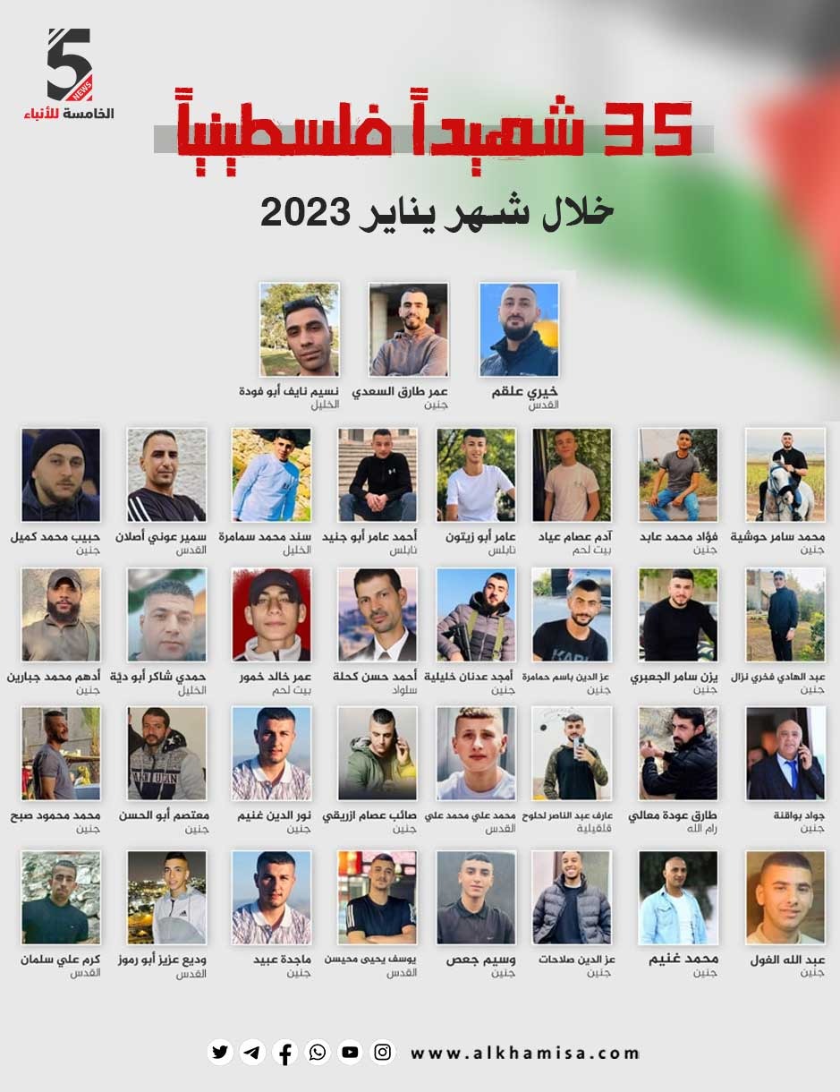 35 شهيدا فلسطينياً خلال شهر يناير 2023